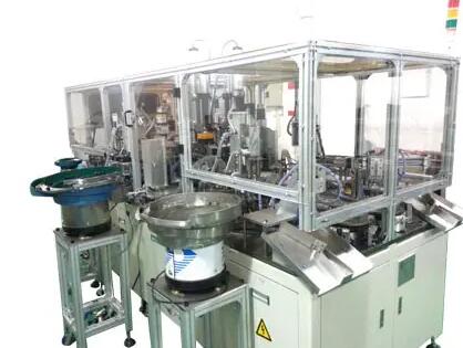 閥門(mén)組裝機(jī)的優(yōu)勢(shì)之處在于,機(jī)架頂面上具有閥門(mén)裝載器具,在裝載器具的一側(cè)裝備有伺服電機(jī),電機(jī)上方有控制箱,閥門(mén)裝載器具的后側(cè)裝配了移動(dòng)滑動(dòng)組件,可以在移動(dòng)滑動(dòng)組件上面設(shè)置具有鎖螺絲的點(diǎn)膠機(jī)構(gòu),在機(jī)架右端具有上料機(jī)構(gòu)。
